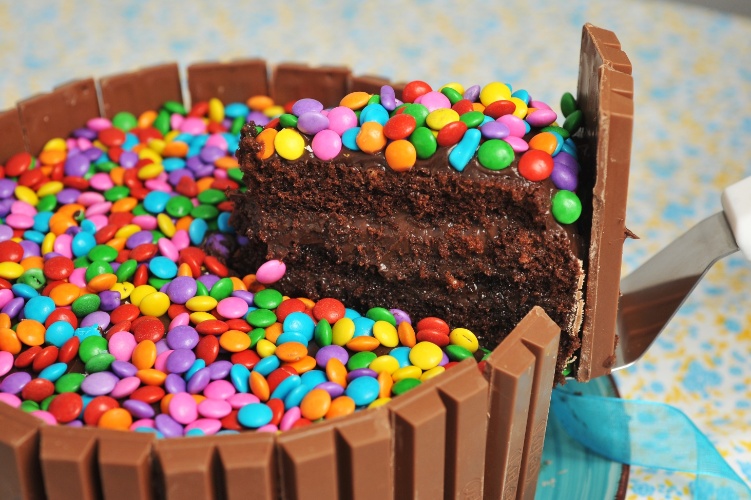 Passe o brigadeiro na lateral e em cima, fixe os Kit Kats cortados ao